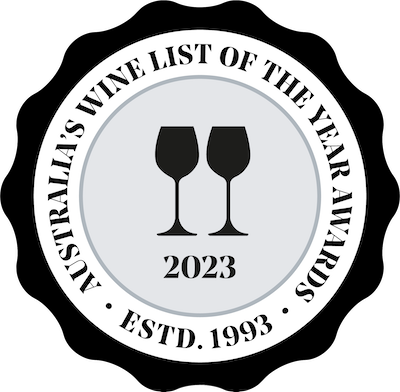 We were delighted to be awarded two ‘glasses’ in Australia’s Wine List Of The Year Award for 2023!